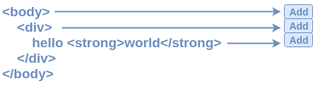 With each mutation callback, elements are filtered based on the selectors found in the stylesheet AST. Once an element has been cherry-picked, event listeners will be added to it based on the set of rules that are defined under the CSS block that the target selector represents at the current iteration.